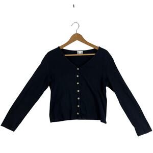 Spumoni San Francisco Cardigan Women LG Black Button Front Cropped Vintage USA