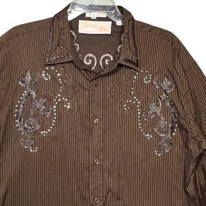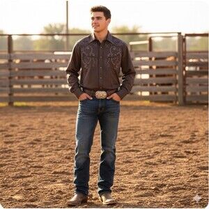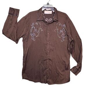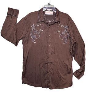 Spunky Mac Shirt Mens XL Brown Embroidered Western Long Sleeve Cowboy