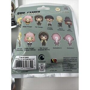 The "Spy Family Series 1 Figural Bag Clips" are collectible merchandise featuring characters from the popular franchise "Spy Family." This lot of 7 sealed packs includes multicolored figurines that can be clipped onto bags or other items. The characters come from the animated TV show "Spy Family" and are officially licensed by Crunchy Roll. Made in China, these bag clips are a must-have for fans of the series looking to add unique pieces to their collection.