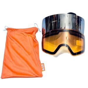 Introducing Spy+ Mainstay Snow Goggles featuring a dual silver and orange lens design. These goggles are helmet compatible and come in brand new condition with microfiber bag.