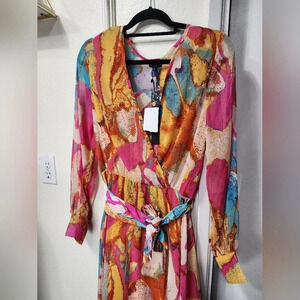Spy Zone Exchange Abstract Maxi Dress Size XL NWT Spring Summer Vacation. One of the loops for waist tie undone. See all pictures for details.
