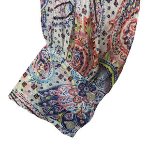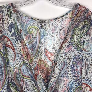 Spy Zone Exchange Maxi Dress Sheer Top Lined Skirt Long Sleeve Paisley White Blue Pink Green Women's Size Large