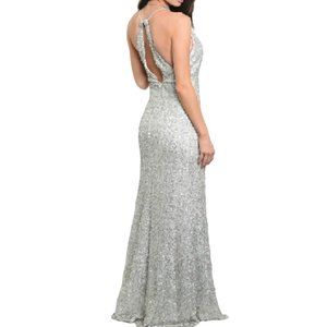 Spy Zone Exchange Sequin Surplice High Leg Slit Gown Silver Size Large NWT