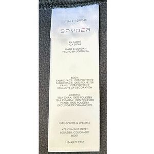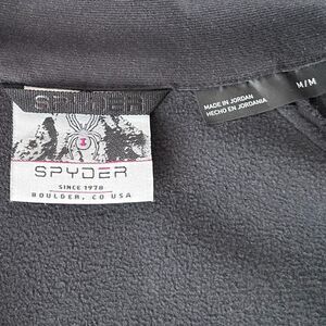 Spyder Outbound men's size Medium 1/2 zip pullover sweater is in excellent condition. Black waffle-knit sweater with long sleeves and stretch fleece panels in underarms and side body. Brushed microfiber inner neck and chin guard. Embroidered Spyder bug logo on left chest and embroidered Spyder logo on right shoulder. 100% Polyester; Hand wash.