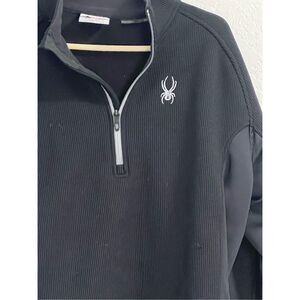 Spyder 1/4 Zip Heavy Knit Black Jacket Mens XXL Fleece Lined Warm