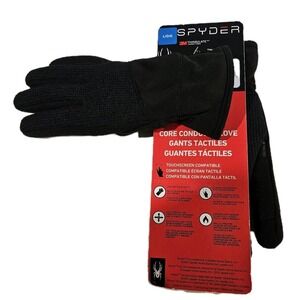 The Spyder 3m Core Conduct Gloves are designed for winter activities like skiing, hiking, and walking. These gloves feature a polyester and leather construction with a 3M Thinsulate lining for insulation. The black gloves are touchscreen compatible, making them ideal for use in colder seasons. The size L gloves are suitable for men who want a stylish and functional option for outdoor adventures in winter, fall, and spring.