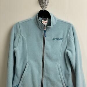 Spyder 4 full zip turtleneck jacket fleece cozy blue green sporty athleisure