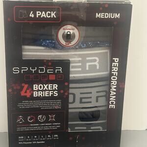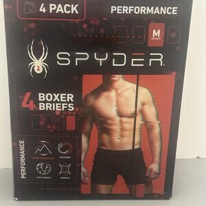 The Spyder 4-Men's Performance Boxer Briefs in size Medium (32-34) are a colorful and stretchy undergarment made from polyester. These boxer briefs are machine washable and come in a pack of four. Designed for maximum comfort and performance, they are ideal for the active man looking for quality underwear that offers both style and functionality.
