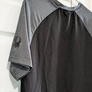 Spyder Active Men's Color Block Sport Top Small, Black Gray with Red Accents