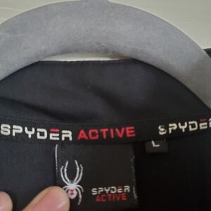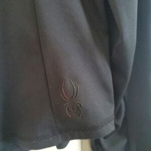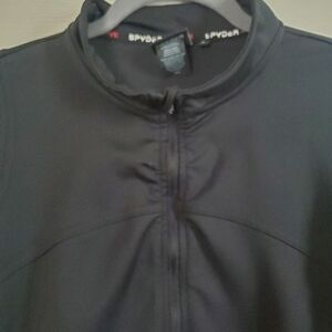 Style: Great quality active pullover. 1/4 zip, long sleeves, thumb holes, mock collar, fitted, medium weight layer. Spyder emblem and logo in multiple places. One zipped pocket in front. This is top notch quality with super soft stretchy material.