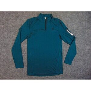 Spyder Active Shirt Mens Med Teal Stretch 1/4 Zip Pullover Pocket Ski Base Layer