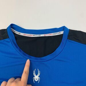 SPYDER ACTIVE T SHIRT MENS L LARGE OCEAN BLUE PROWEB CREW NECK DROP CUT TEE