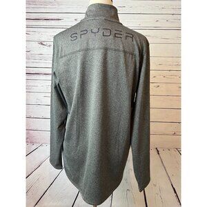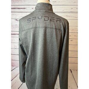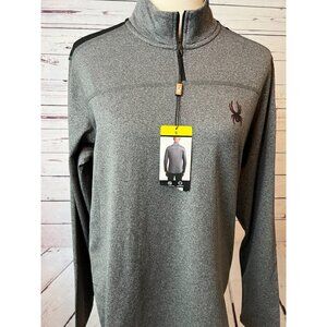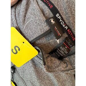 NWT Spyder Active half zip pullover sweatshirt with 4 way stretch fleece. Mens size Small. Spell out Spyder logo across the back. Machine washable. Made in china. 89% Polyester 11% Spandex. Pit to end of sleeve 21.5", pit to pit 21.25", back bottom of collar to bottom of shirt 28.5". Gray in color with mock turtleneck when fully zipped. Great new with tags condition makes a perfect gift for the active running basketball fitness workout gym rat.