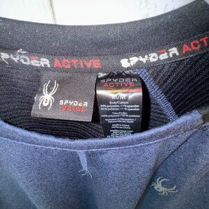 Spyder Base Layer Shirt Mens Med Navy Blue Active Long Sleeve Logo Performance
