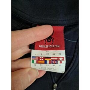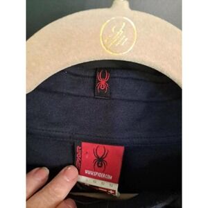 Spyder Black 1/4 Zip with Web Inside Long Sleeve. There is an embroidered spider on the back and reinforced elbows. Also it is super soft.