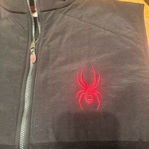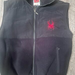 Stylish black vest featuring a striking red spider logo. Perfect for layering.