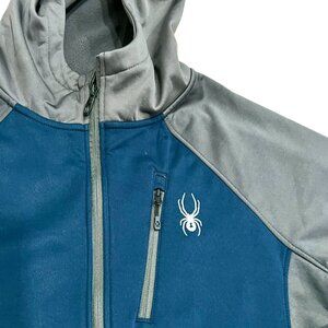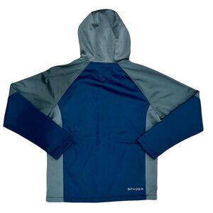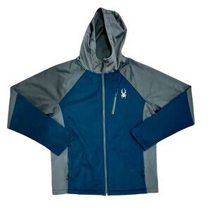 This jacket is in perfect condition with no noticeable flaws. It is a full zip jacket with hoodie. Regular or athletic fitting,
