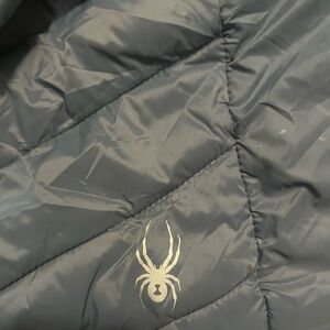 Stylish quilted jacket by Spyder. Features a cozy fur trim. Perfect for cold weather.