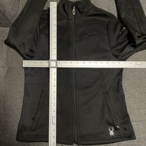 The women's size small jacket features a full zip closure, long sleeves, and a short jacket/coat length, offering a blend of functionality and a flattering fit. The Spyder brand is known for its quality, and this jacket lives up to that standard with its precise construction and attention to detail, making it a reliable choice for any occasion. In excellent preowned condition. Measurements are included in photos.