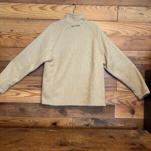 I'll be honest, I was not familiar with this brand but the quality is apparent as soon as you hold it. NWOT this jacket will provide warmth in cooler temperatures .I would describe it as a heavyweight jacket as both the fabric and the fleece are thick. The color is a light tan w/black accents. The heavy duty zipper is in excellent working order, 2 side zippered pockets and 2 deep interior pockets. It is a Men's large and measures 24.5" pit to pit across the back. The sleeve length is 32" measuring from the neck. Designed to hit at the hip the overall length of this jacket is 28.5". It is quality made, clean, versatile, warm and a must for your fall wardrobe.