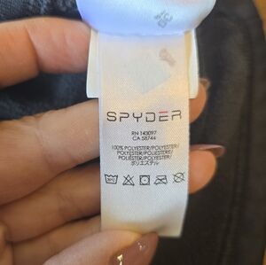 Spyder Girls Crush hooded poly shell, fleece lined jacket. Black with kaleidoscope white print sleeves, hot pink zipper. Attached hood, Spyder logos. Excellent used condition.