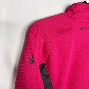 Spyder Girls L Pink Gray Bandita Full Zip Fleece Jacket Sweater Knit Colorblock