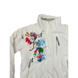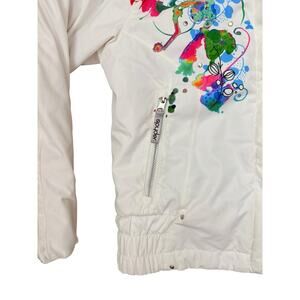 Spyder Girls Snow Ski Jacket Size 8 White Multicolor Print Insulated Winter Coat