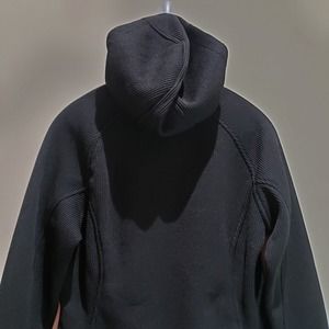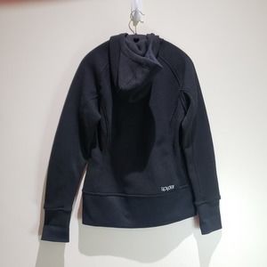 Good, pre- owned condition. Gently worn with normal signs of wear. Full zip with hood. Inner fabric content tag is missing (last photo). Please see all pictures for details and complete condition description.