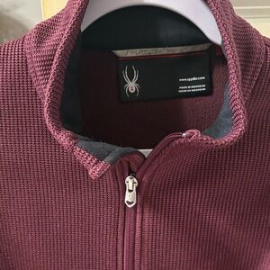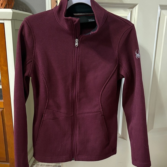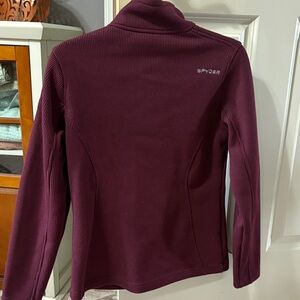 Maroon ribbed jacket with Spyder logo on back. Ideal for layering.
