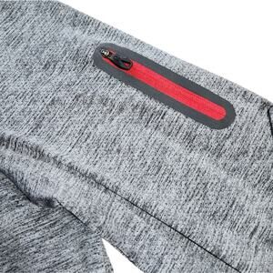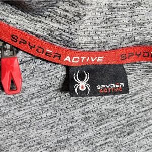 Spyder men's active long sleeve performance shirt in heather gray with red and black accents. No size tag, please see measurements for accurate sizing.