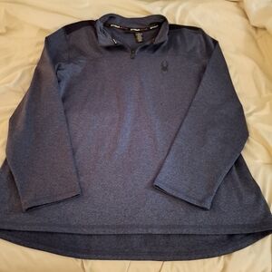 Experience the perfect blend of style and comfort with the Spyder Blue Heathered Lightweight Shirt Jacket. This versatile piece is ideal for layering, offering a relaxed fit and a sleek design. Its vibrant blue color adds a pop of color to any outfit, making it a must-have for any wardrobe. Size Large. Pit to pit measures 24-1/2 inches. Length front 26 inches. length back 28 inches. High-low hem.