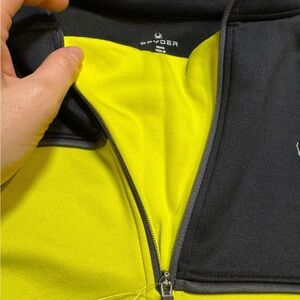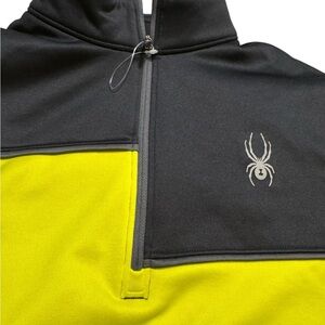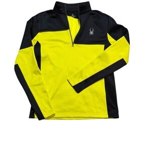 Spyder ski top, men’s athletic pullover, yellow black zip shirt, performance wear, snow gear, winter sports layer, Spyder activewear, ski base layer