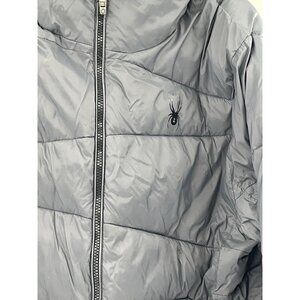 Spyder Mens Gray Hooded Puffer Jacket With Zip Pockets & Logo