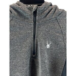 Spyder Mens Hooded Half-Zip Sweater XL Fleece-Lined Gray Black Outdoor Streetwea