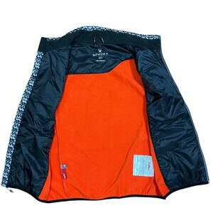 Get ready for outdoor adventures with this stylish Spyder vest! This men's size large vest features a unique gray fleck pattern, complemented by vibrant orange fleece sides and back for added warmth and a pop of color.