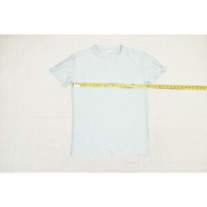 This Spyder Men's Performance T-Shirt in a light blue color is perfect for athletic activities or casual wear. The shirt is a size Large and features a subtle spider logo on the sleeve, making it a stylish and functional addition to your wardrobe. Made in China, the garment's fabric type is a quick-drying knit, ideal for active use. The shirt's measurements are approximately 28.5 inches from top to bottom and 19.5 inches from armpit to armpit, ensuring a comfortable fit. It's in excellent pre-owned condition, with no visible stains, tears, or damage. The crew neck and short sleeves provide a classic, athletic look. Please review all photos for a detailed view of the item and its measurements.