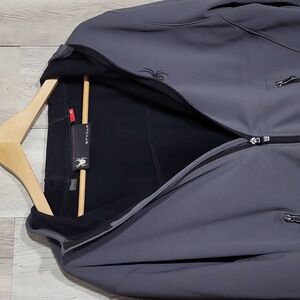 Spyder Mens Medium HydroWeb Soft Shell Jacket Hooded Full Zip Grey Activewear