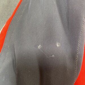 Slight wear near zipper area and some small hole on the sleeve otherwise in good condition.