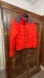 High-performance Spyder insulated puffer jacket in red with charcoal contrast shoulder panels. Men’s size Large. Lightweight but warm — ideal for skiing, hiking, travel, or cold-weather layering. Full zip style with zippered hand pockets and signature Spyder logo chest hit.