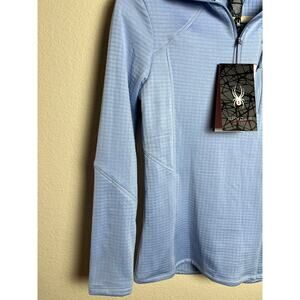 -Description: Spyder Active, ladies top extra small. Baby blue color. Long sleeves, quilted inside with warming tech fleece - very soft. Cell phone size pocket. Reflective trim. Chafe resistant seaming. New with tags.