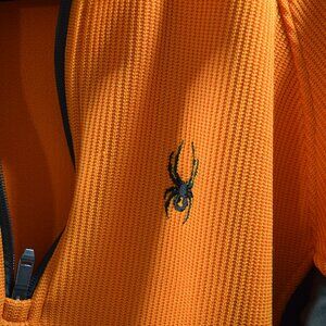 Bold orange with black accents. Features a half-zip design. Spyder logo on chest.