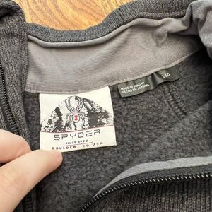 Spyder Poly Active Fleece Full Zip Jacket Men Size Large Gray Front Pockets.