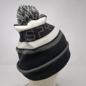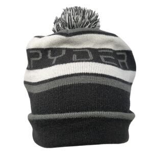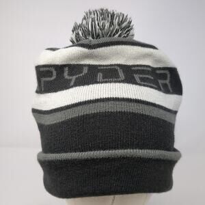 Spyder Pom Pom Knit Beanie Hat Black One Size Striped Casual Outdoor