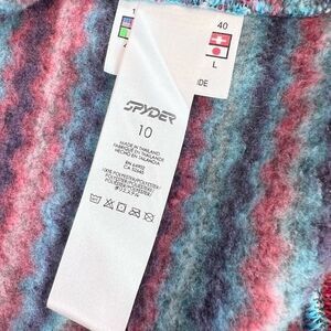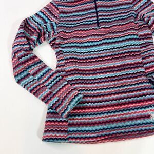 Spyder Pullover Sweater Womens 10 Blue Multi Zig Zag Stripe Quarter Zip Fleece
