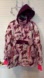 Spyder Women's All Out GTX Anorak ski jacket in a white noise print. Eye-catching kangaroo pocket jacket with a unique purple and pink pattern. Features a hood and front pocket. Sipper in the front comes down to mid chest. Thumb holes in bring pink sleeves sewn into jacket. Zipper pockets on the side connect in the front. Middle Velcro pocket is a separate pocket. Hood is adjustable. And neck has a high zipper and velcro closure on top. Great condition item.