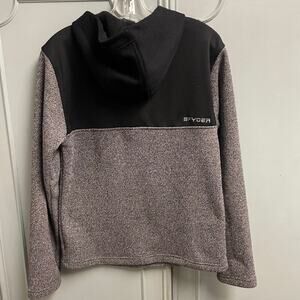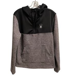 Excellent condition mens Spyder Racer half zip/quarter zip pullover hoodie in a gray and black color with embroidered logo at the chest and back