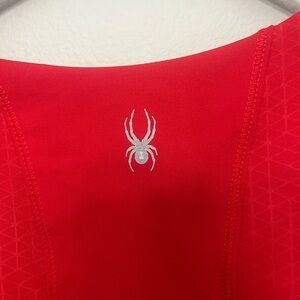 Vibrant red athletic tank with Spyder logo. Smooth, breathable performance fabric. Sleek, minimalist design for active wear.
