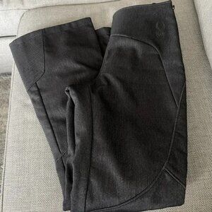 Fantastic form-fitting ski pants from Spyder with a side zipper and hook closure. Luxurious, high-quality material in charcoal grey. Couple of tiny marks near the ankles but no other notable signs of wear. Ski boot garters inside the pant legs. Perfect for cutting a sleek figure on the slopes. Listed as 8 and 8P – ask if you need measurements. These pants originally sold for over $200 and are selling far above the asking price elsewhere on this site!