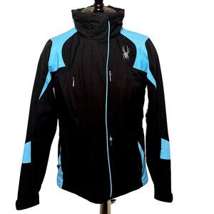 Spyder Snow Ski Boarding Full Zip Insulated Black Blue Hooded Jacket Size M