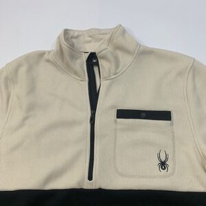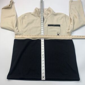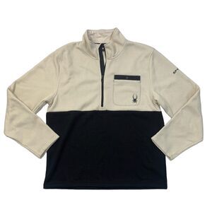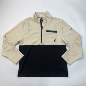 SPYDER SWEATSHIRT MENS L LARGE MEDALLION BEIGE BLACK HALF ZIP FLEECE PULLOVER